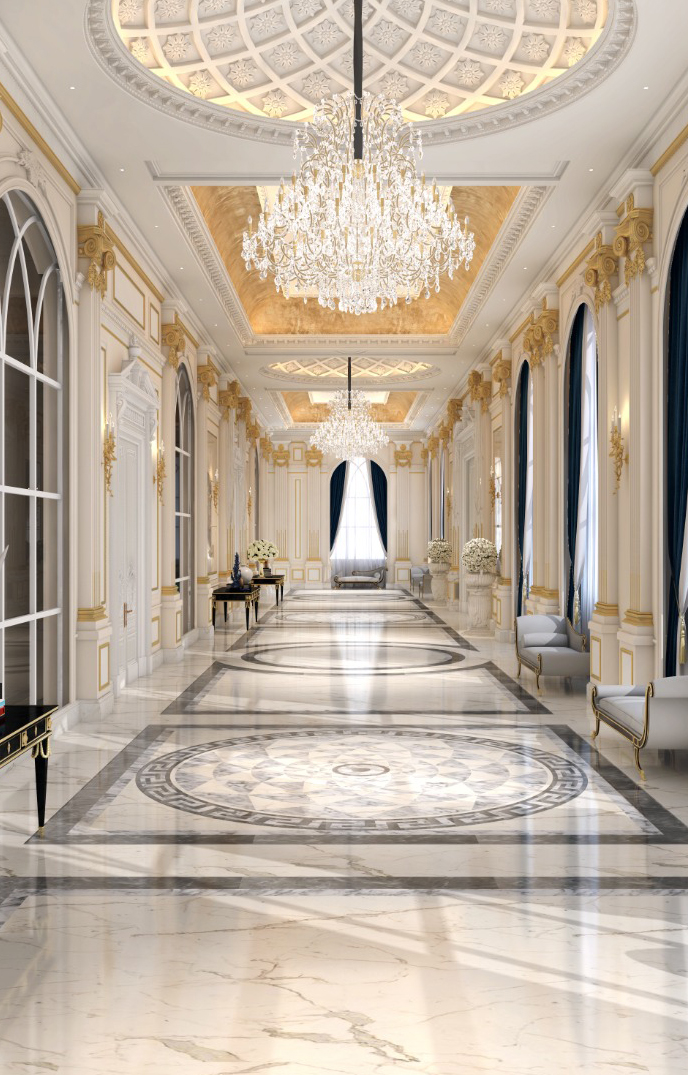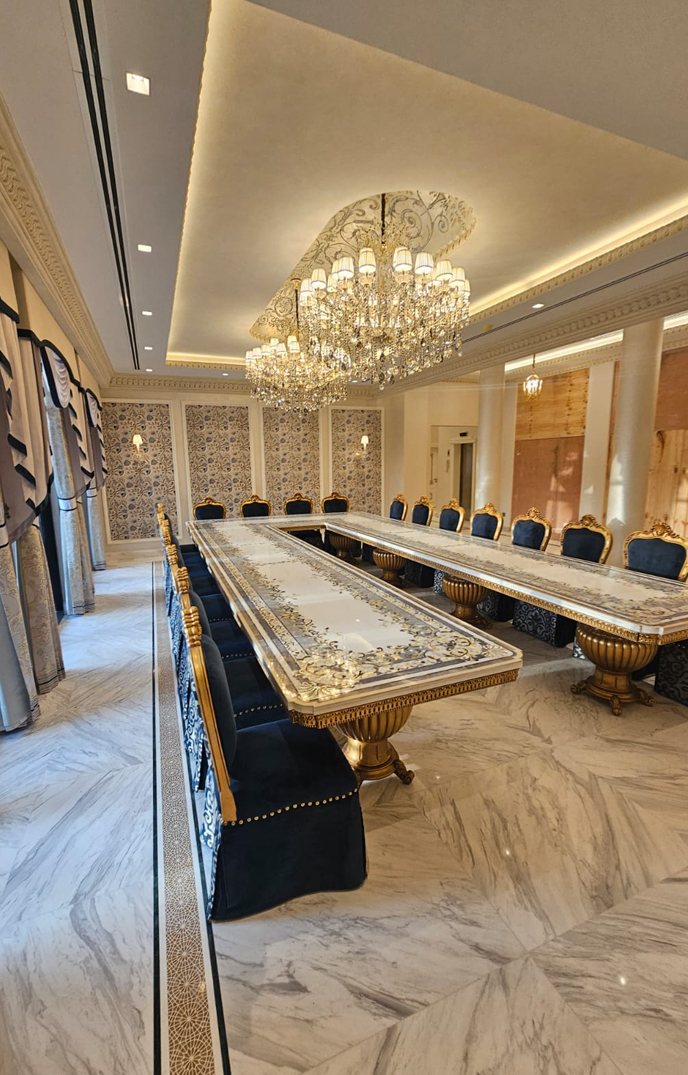 Located in the prestigious Emirates Hills, Dubai, the 23,000 sq. ft. luxury private villa is designed to the highest standards, featuring a harmonious blend of intricate wall and ceiling gypsum decorative elements.